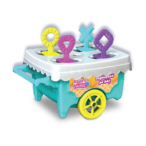 MAKE IT SWEET - INGHETATA PE BAT NORIEL Noriel Make It Sweet "Мороженое на палочке" Сделайте вкусное мороженое с улыбкой! Но не забывайте щедро использовать секретный ингредиент, без которого сладости не такие сладкие: это дружба! Поделитесь мороженым, которое вы делаете со своими приятелями, чтобы день был действительно вкусным и полным улыбок! Набор содержит: - 1 х "Тележка" с мороженым - 4 х Бета-краситель Рекомендуемый возраст: от 5 лет