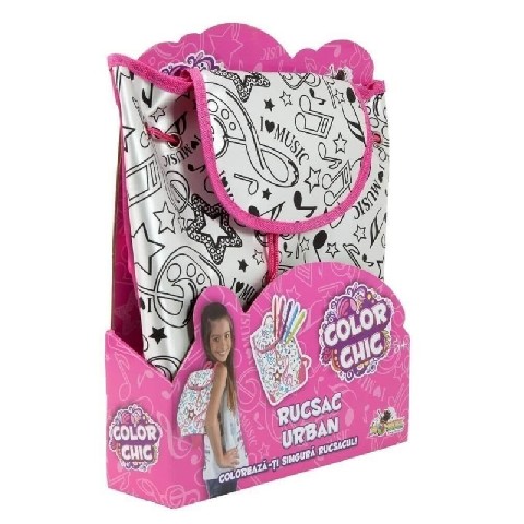 Color Chic Rucsac urban NORIEL Noriel Color Chic "Городской рюкзак" Городской рюкзак Color Chic позволяет идеально сочетать два любимых занятия стильных девушек: захватывающий аксессуар и индивидуальный творческий подход. Практический и с красивым дизайном, рюкзак может быть окрашен девушками при помощи маркеров, включенными в набор Chic Chic. Каждый рюкзак имеет свою специфику и индивидуальность и сочетается с личным стилем каждой из маленьких девочек, которые хотят быть оригинальными и креативными. Размер: 31 x 26 см Рекомендация возраст: 5 лет +