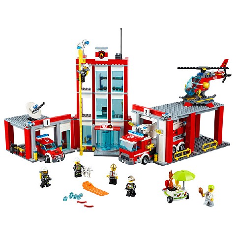 Fire Station LEGO LEGO City "Пожарная часть" Конструктор LEGO City "Пожарная часть" - это один из самых увлекательнейших и веселых способов времяпрепровождения! Помоги пожарным загрузить оборудование в грузовик и вертолёт! Пришло время обеда, так что съезжай вниз по шесту и отправляйся к киоску с хот-догами. По дороге брось косточку пожарному псу. О нет, киоск с хот-догами в огне! Вытяни пожарный шланг, потуши огонь с помощью специальной водяной пушки и спаси хот-доги! Количество деталей: 919 Рекомендуемый возраст: 6 - 12 лет
