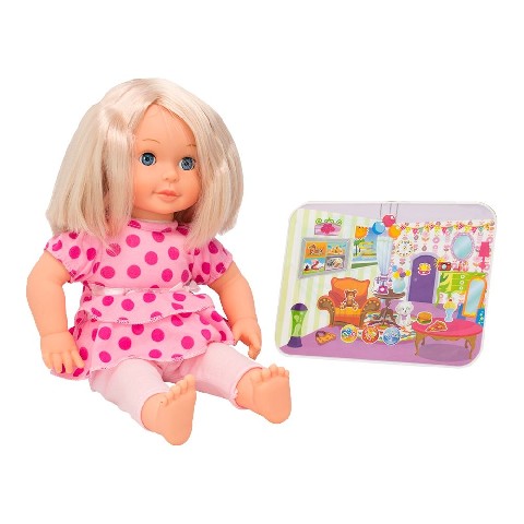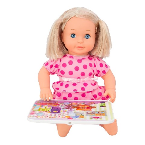 Maia cu Activitati NORIEL Noriel Интерактивная "Kукла Майя" (рум) Майя - это кукла, которая говорит и поет, вдохновляемая планшетом, с которым она взаимодействует. Планшет и кукла общаются через инфракрасный порт. На поверхности планшета изображена гостиная. Клавиатурой на этой иллюстрации являются кнопки. Набор содержит: Кукла Майя, планшет. Кукла работает от 3-х батарей АА (входят в комплект). Планшет работает от 3-х батарей AG13 (включены). Рекомендуемый возраст: 3 года +
