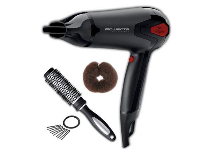 Фен Rowenta CV5374F5 Мощность 2100 Вт Количество режимов 3 Холодный воздух есть Насадки концентратор Петелька для подвешивания есть Цвет черный Особенности и функции круглая щетка