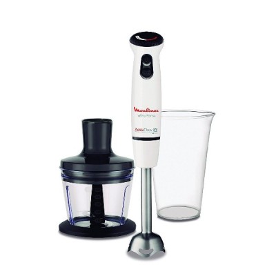 Блендер Moulinex DD8611PRM Тип погружной Мощность 750 Вт Измельчитель есть Материал чаши пластик Количество скоростей 20 Турборежим есть Венчик для взбивания нет Насадка для пюре нет Мерный стаканчик нет Насадка для нарезки кубиками нет Материал корпуса пластик Материал погружной части металл Цвет белый Вес 2 кг Особенности и функции Технология Activflow