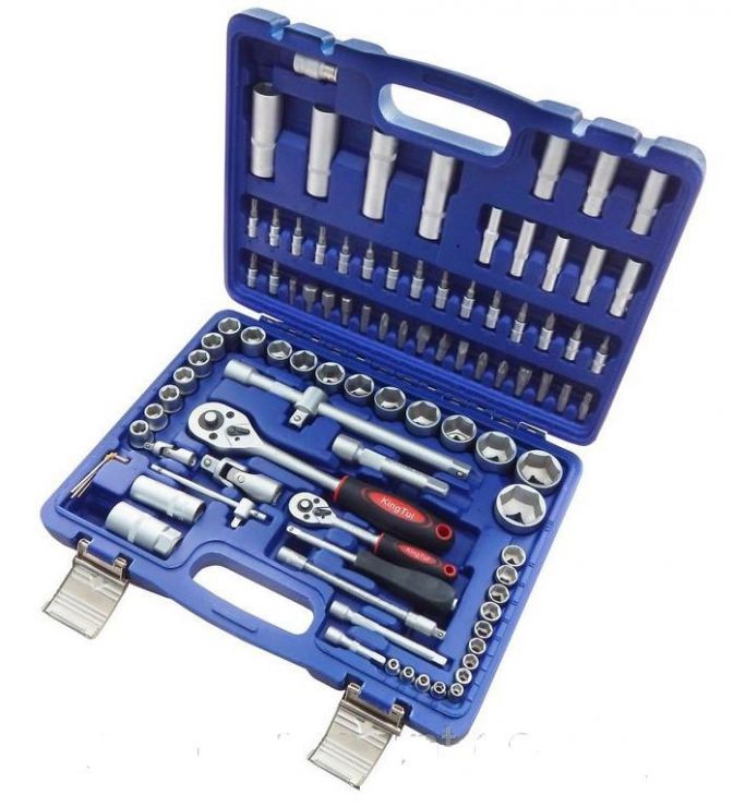 Набор инструментов KingTul KT82 Тип автомобильный Количество предметов в наборе 82 шт Набор бит в комплекте есть, 15 шт Биты 5/16" есть Биты звездочка (Torx) есть Биты шестигранник (Hex) есть Биты крестовые есть Биты плоские есть Биты крестовые (Pozidriv) есть Отверточная рукоятка для бит есть Биты подробно 5/16": H8, H10, H12, H14, T40, T45, T50, T55, SL8, SL10, SL12, PH3, PH4, PZ3, PZ4 Набор гаечных ключей в комплекте есть, 9 шт Размер гаечных ключей 8-22 мм Гаечные ключи подробно комбинированные ключи: 8, 10, 11, 12, 13, 14, 17, 19, 22 мм Набор торцевых головок в комплекте есть, 44 шт Размер торцевых головок 4-32 мм Головки торцевые 1/4" есть Головки торцевые 1/2" есть Головки торцевые 6-гранные есть Головки с битами есть Головка свечная 16 есть Головка свечная 21 есть Ключ-трещетка для головок есть Вороток для головок есть Удлинитель для головок есть Гибкий удлинитель для головок есть Карданный шарнир для головок есть Головки торцевые подробно 1/4": 4, 4.5, 5, 5.5, 6, 7, 8, 9, 10, 11, 12, 13, 14 мм; с битами 1/4": H3, H4, H5, H6, T8, T10, T15, T20, T25, T30, SL4, SL5.5, SL7, PH1, PH2, PZ1, PZ2; трещотка 1/4"; удлинитель 1/4": 50, 100 мм; 1/2": 14, 15, 16, 17, 18, 19, 20, 22, 24, 27, 30, 32 мм; трещотка 1/2"; удлинитель 1/2": 125, 250 мм; свечные 1/2": 16, 21 мм Кейс в комплекте есть