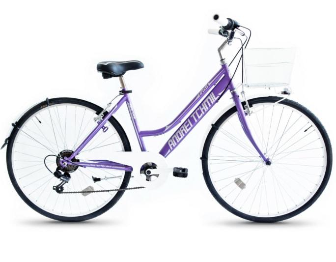 CITY BIKES WOMAN IRIS Frame/Fork: Steel 28" Wheel/Tire Size: 28" / 700C Speeds: 6-speed option for stock models Brakes: V-brake set Chainwheel: 42T, 170mm Rims: alloy, 28" Shifter: Shimano Tourney Freewheel: Shimano Tourney Derailleur posterior: Shimano Tourney Sizes: 46 cm (medium)