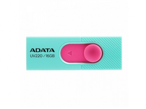 16GB USB2.0 Flash Drive ADATA UV220, Turquoise-Pink, Plastic, Slider (R/W:18/6MB/s) Стандарт USB USB 2.0 Объём памяти, Гб 16