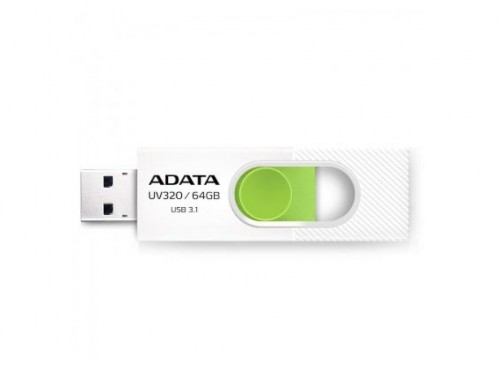 Флешка ADATA UV320, 64GB, USB3.0, White-Green, Plastic, Slider (R/W:80/20MB/s) Стандарт USB USB 3.0 Объём памяти, Гб 64