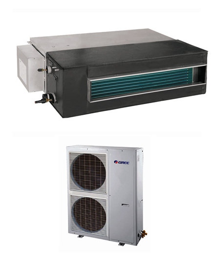 Gree Conditioner U-match T1 R410 DC Inverter GFH24K3FI+GUHD24NK3FO (R410) (pina la 70m2) Канальная сплит-система U-Match Inverter благодаря установке внутренних блоков внутри фальшстен, подвесных потолков и в приспособленных для этого помещениях идеально подходят для больших офисов, залов, гостиниц. В интерьере заметны лишь декоративные воздухораспределительные решетки, через которые распределяется воздух. Не зря кондиционеры канального типа называют еще «невидимками». Кондиционеры такого типа позволяют создавать разветвленные системы воздуховодов, охватывающие большое количество помещений. Канальные кондиционеры оснащены универсальным наружным блоком, работающие на фреоне R410A. Модельный ряд представлен блоками различной мощности, что позволяет без труда подобрать кондиционер для самых разных по площади помещений. Благодаря тому, что к внутреннему блоку подвод и отвод можно производить со всех сторон, монтаж прибора значительно упрощается. Кроме того, наличие длинной трассы позволяет разместить на значительном удалении друг от друга внешний и внутренний блоки. Режим работы охлаждение / обогрев Габариты внутреннего блока 1239x268x558 мм Вес внутреннего блока 34 кг Габариты наружного блока 980x790x427 мм Вес наружного блока 67 кг Потребляемая мощность при охлаждении 2,18 кВт Потребляемая мощность при обогреве 2,21 кВт Воздухообмен при охлаждении 1400 м3/ч Воздухообмен при обогреве 1400 м3/ч Осушение помещения Минимальный уровень шума (внутренний блок) 40 дБ Максимальный уровень шума (внутренний блок) 46 Дб Инверторное управление компрессором Марка хладагента R410A Минимальная рабочая температура на охлаждение -15 oC Минимальная рабочая температура на обогрев -10 oC