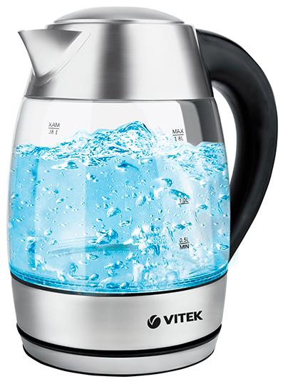 Чайник VITEK VT-7047 Индикатор уровня воды есть Индикация включения есть Количество температурных режимов 5 Материал корпуса стекло/нержавеющая сталь Мощность 2200 вт
