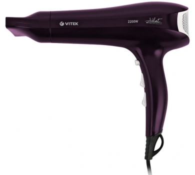 Фен VITEK VT-2249 Тип фен Мощность 2200 Вт Независимая регулировка нагрева и воздушного потока есть, режимов интенсивности воздушного потока: 3 Дополнительные режимы подача холодного воздуха, ионизация Конструкция петля для подвешивания, съемный фильтр Защита от перегрева есть Покрытие турмалиновое