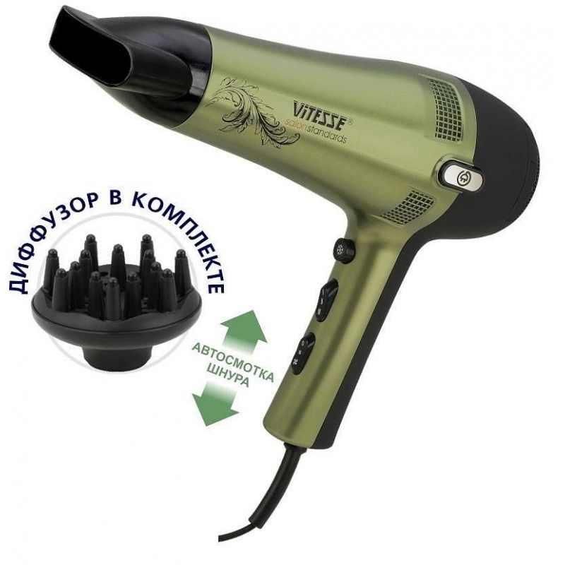Фен Vitesse VS-0942 Модель VS-0942 Бренд VITESSE Мощность, Вт 2100