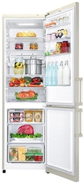 Холодильник LG GA-M599ZEQZ Расположение морозильной камеры снизу Размораживание хол. камеры No Frost Размораживание мор. камеры No Frost Количество камер 2 Количество дверей 2 Антибактериальное покрытие да Уровень шума, дБ 39 Класс энергопотребления A++ Энергопотребление в год, КВт 257 Общий полезный объем, л 360 Объем холодильной камеры, л 226 Зона сохранения свежести, л 29 Объем морозильной камеры, л 105 Количество ящиков морозилки 3 Тип подсветки LED Освещение холодильной камеры да Тип компрессора инверторный Количество компрессоров 1 Хладогент R600a Материал полок стекло Перенавешиваемые двери да Звуковая сигнализация открытой двери да Тип управления Сенсорное Габариты (ВxШxГ), мм 2000x595x688 Цвет бежевый Вес, кг 81