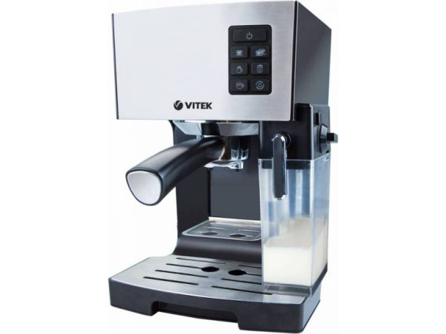 Кофеварка VITEK VT-1522 Black Кофеварка VT-1522 BK– это уникальное сочетание стильного дизайна и невероятной функциональности. Корпус из высококачественного пластика с декоративными элементами из нержавеющей стали превратит данную модель в настоящее украшение вашего пространства. Кофеварку VT-1522 BK обязательно оценят все любители кофейных напитков. Преимущество данной модели в том, что в ней предусмотрена система заваривания прохождением кипятка через молотый кофе. Это позволяет получить еще более качественно приготовленный и ароматный напиток. Значительным преимуществом данной модели является функция подогрева, благодаря которой благородный напиток раскрывает свои вкусовые качества. Тип Эспрессо рожковая Тип используемого кофе Молотый Тип управления Кнопочное Функции Автоматическая очистка от накипи Выбор объема порции Подогрев чашек Давление водяного насоса 15 бар Приготовление капучино Автоматическое Контейнер для засыпания молотого кофе Без контейнера для засыпания молотого кофе Емкость для молока Есть Резервуар для воды 1.4 л Дисплей Есть