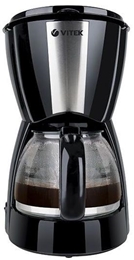 Капельная кофеварка VITEK VT-1503 Тип капельная Используемый кофе молотый Мощность 900 Вт Объем кофейника 1.2 л Манометр нет Автоматическая декальцинация нет Таймер нет Противокапельная система есть Дисплей нет Подача горячей воды нет Плита автоподогрева есть Съемный лоток для сбора капель нет Материал корпуса пластик Индикатор уровня воды есть Индикация включения есть