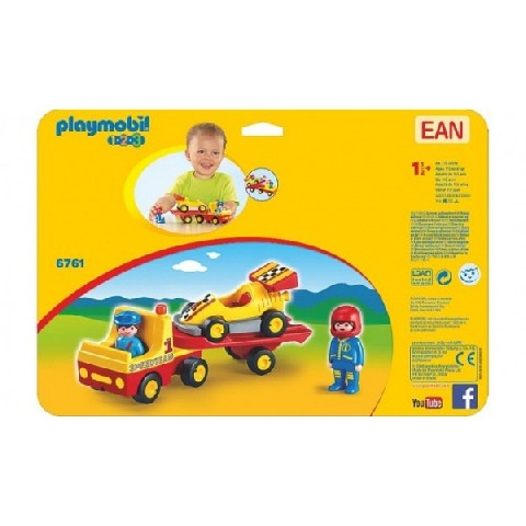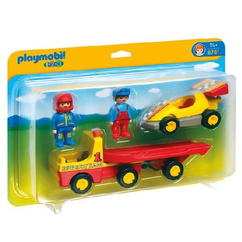Racing Car with Transporter Playmobil Игровой набор "Автовоз с гоночной машиной" Игрушка Автовоз с гоночной машиной имеет откидывающийся прицеп. Из-за своей яркой цветовой гаммы, гладких и реалистичных форм игровой набор помогает в творческом развитии детей. Все элементы безопасны и гигиеничны. Легко поддаются мойке и не имеют маленьких деталей, которые можно проглотить. Предназначен детям старше 18-и месяцев.