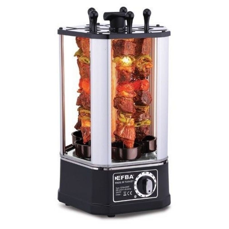 Электрошашлычница Efba EF-600 Модель EF-600 Бренд EFBA Расположение вертикальное Нагревательный элемент керамический Тип управления механическое Мощность, Вт 1400 Время приготовления, мин 30 Съемные поверхности да Материал корпуса пластик, стекло Антипригарное покрытие да Авто вращение шампуров да Автоматическое отключение да Количество шампуров 5 Размеры, см 30x55x30