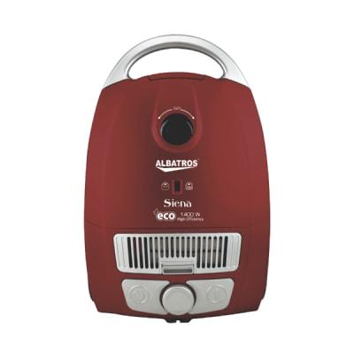 Albatros Siena-Eco Тип Мешковый Тип выходного фильтра HEPA Потребляемая мощность 1400 Вт Мощность всасывания 300 Вт Тип пылесборника Мешок Емкость пылесборника: 3.5 л Тип трубы всасывания Телескопическая Длина шнура 5 м Регулировка мощности На корпусе Цвет Красный