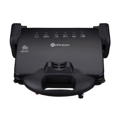 Электрогриль Rohnson R265 делает тосты и сэндвичи Регулируемый термостат Индикатор питания Несколько позиций обжаривания Большая поверхность для выпечки 225x315 мм Мощность 2000 Вт Управление Механическое Регулировка температуры Да Нагревательный элемент Тэн Цвет Черный Производитель ROHNSON Модель R265