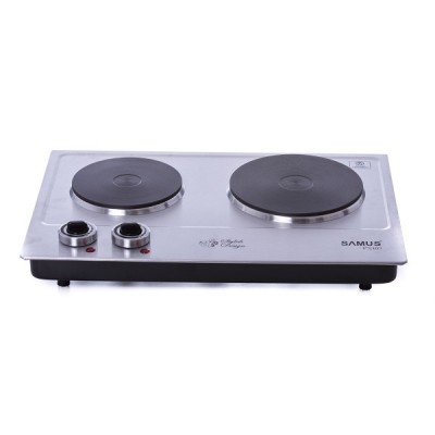 Samus PX102 Тип питания: электрический Мощность: 2500 Вт (1000 + 1500 Вт) Чугунная горелка диаметром 155 и 188 мм Цвет: Inox Валовые размеры: 530 x 105 x 370 Размеры нетто: 500 x 90 x 330
