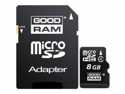 GOODRAM micro SDHC 8GB CL4 + adapter GOODRAM micro SDHC 8GB CL4 + adapter Класс скорости Class 4, 300х Объём памяти, Гб 8