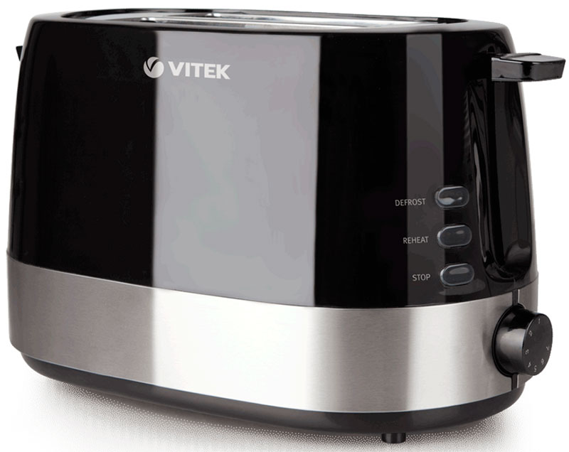 Тостер VITEK VT-1584 (850 Вт) на 2 тоста мощность 850 Вт механическое управление функция размораживания ненагревающийся корпус решетка для подогрева булочек, поддон для крошек