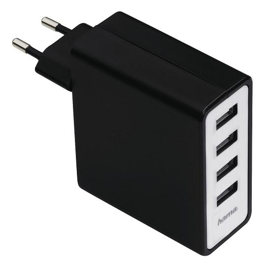 Зарядное устройство Hama 54182 Выходное напряжение 5 В Максимальный выходной ток 5.1 А Цвет черный Количество выходных коннекторов 4 Проводная есть