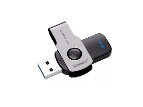 Флешка Kingston DataTraveler Swivl, 64GB, USB 3.0, Black, Metal/Plastic, Rotatable opening/closing, Durable material with metal shield (Read 100 MByte/s, Write 30 MByte/s) Стандарт USB USB 3.0 Объём памяти, Гб 64