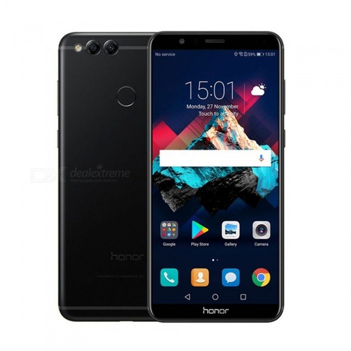Huawei Honor 7X (AL10) 5.93" 4+ 32Gb 3340mAh DUOS/ BLACK CN+ смартфон с Android 7.0 поддержка двух SIM-карт экран 5.93", разрешение 2160x1080 двойная камера 16/2 МП, автофокус память 32 Гб, слот для карты памяти 3G, 4G LTE, LTE-A, Wi-Fi, Bluetooth, GPS, ГЛОНАСС объем оперативной памяти 4 Гб аккумулятор 3340 мА?ч вес 165 г, ШxВxТ 75.30x156.50x7.60 мм