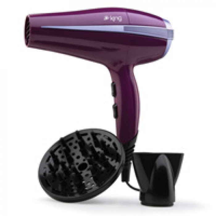 Фен KING K 427 Мощность двигателя: 2200 Вт Настройки скорости и тепла: 2 скорости и 3 режима температуры Защита от перегрева: Да Кольцевой диффузор и дополнительный объем: Да Кнопка холодного воздуха: Да