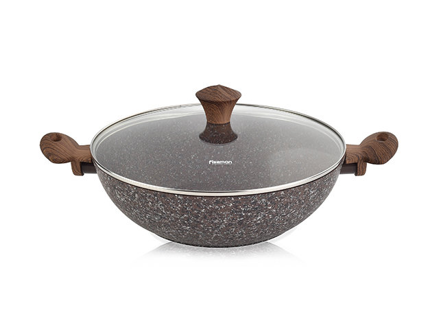 FISSMAN 4871 Вок MAGIC BROWN 30x9 см со стекл. кр. Серия MAGIC BROWN Антипригарное покрытие EcoStone Диаметр 30 см Высота борта 9 см Подходит для плит любых Вес 2.29 кг Материал алюминий