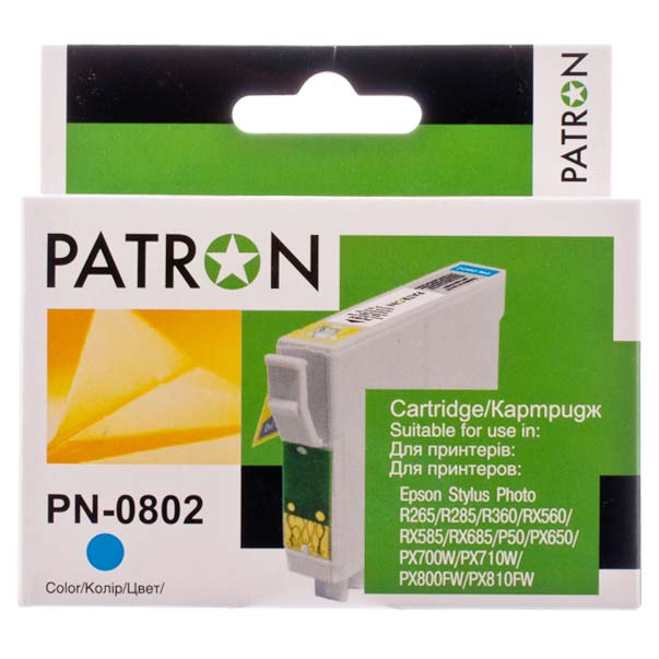 TintaPatron T0802 Cyan Epson P50/R265/285/360/RX560/585/685/PX650/660/700/710/720/730/800/810/820/830 (15ml)TintaPatron T0802 Cyan Epson P50/R265/285/360/RX560/585/685/PX650/660/700/710/720/730/800/810/820/830 (15ml)