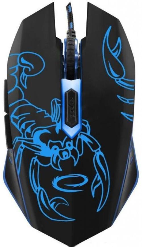 Esperanza SCORPIO MX203, Optical Mouse for professional game players, 6D, 800/1200/1600/2400 DPI, illuminated, braided cable 1.5m, USB, Blue Тип: оптическая Разрешение, dpi: 2400 USB: да Количество клавиш: 6 Колесо прокрутки: 1 Цвет: чёрный