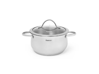 FISSMAN 5413 VALERY 20x10 см / 3,1 л с крышкой Объем 3.1 л Диаметр 20 см Высота борта 10 см Диаметр дна 17 см Подходит для плит любых Использование в духовке Да Можно мыть в посудомоечной машине Да Вес 1.59 кг Материал сталь 18/10
