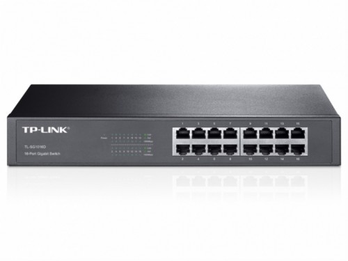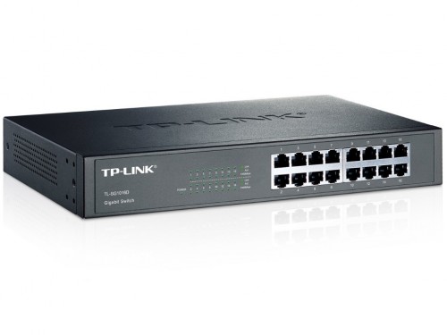 TP-LINK TL-SG1016D 16-port Gigabit Desktop/Rackmount Switch, 16 10/100/1000M RJ45 ports, 13-inch rack-mountable steel case