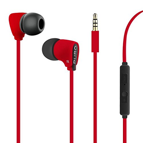 PuroIPHF20REDEarphoneFlatCableW/Button/Mic/Vol."Fine"Red