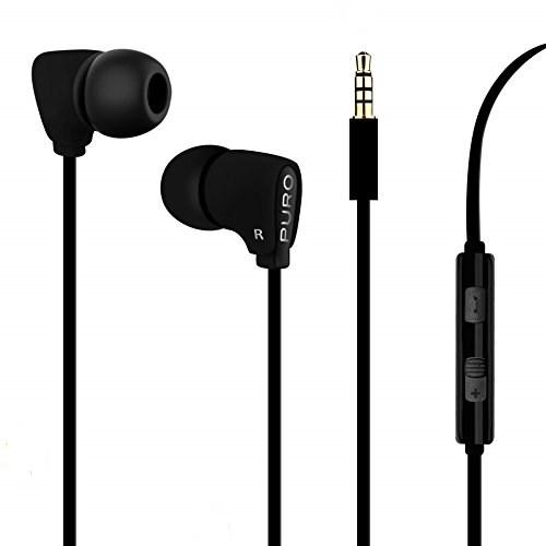 Puro IPHF20BLK Earphone Flat Cable W/Button & Mic. & Vol. "Fine" Black
