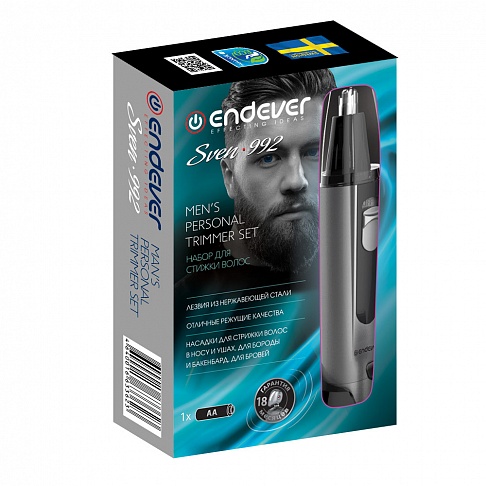 Набор для стрижки волос ENDEVER Sven 992 Питание: Работает от 1 батарейки AA (в комплект не входит) Особенности и дополнительные функции:Лезвия из нержавеющей стали Отличные режущие качества Насадки для стрижки волос в носу и ушах, для бороды и бакенбард, для бровей Беспроводной прибор Защитный колпачок для хранения и перевозки LED-индикатор включения Удобный органайзер для хранения прибора Комплект поставки:Триммер 2 насадки в комплекте Щетка для очистки Руководство по эксплуатации Гарантийный талон