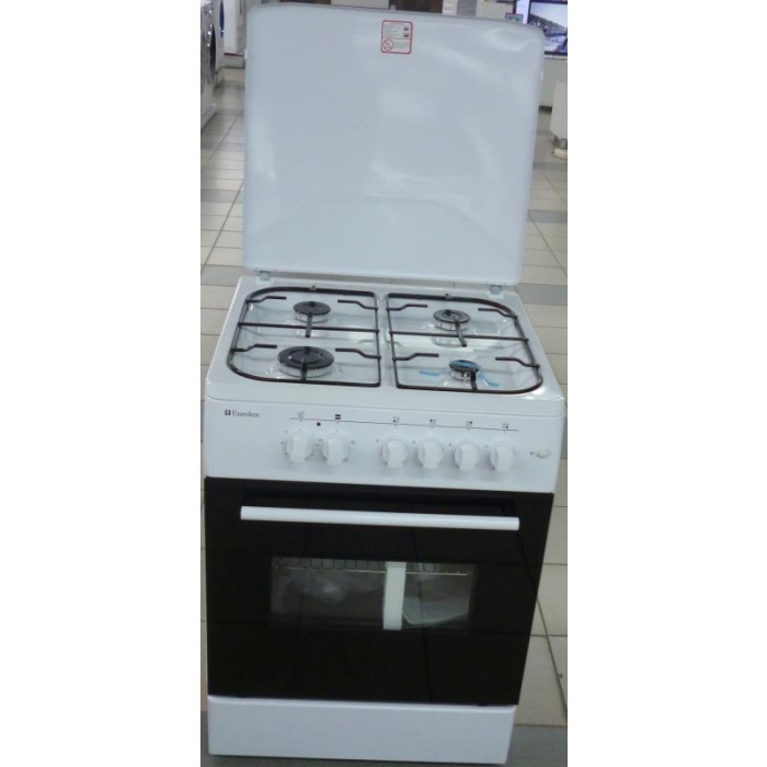 KUBB TE56402-P white газ плита, 4 конфорочная, электро духовка, Термостат, 85*50*50, крышка стеклянная, чёрная, белая