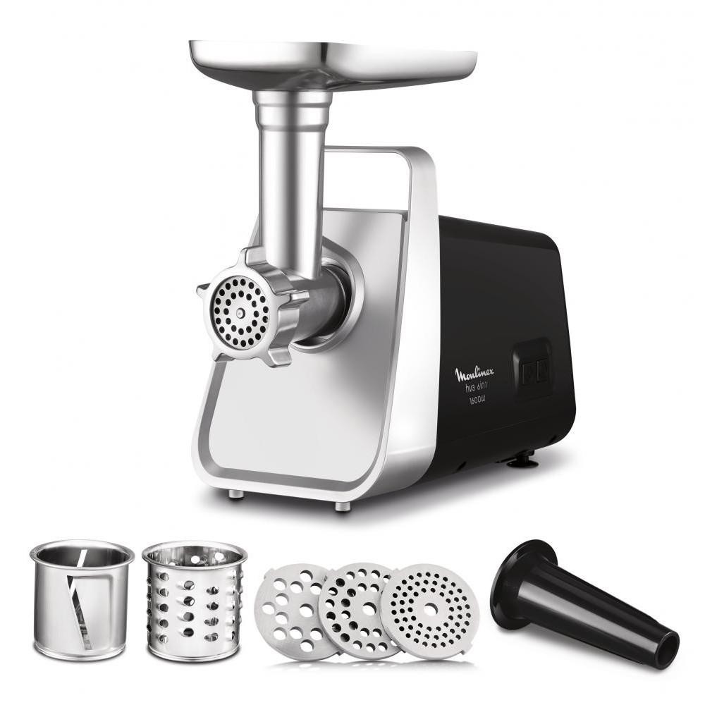 Мясорубка MOULINEX ME306832 мощность 500 Вт перерабатывает 1.9 кг/мин насадка-терка, насадка для шинковки, насадка для кеббе, диск для фарша сделана из пластика и металла