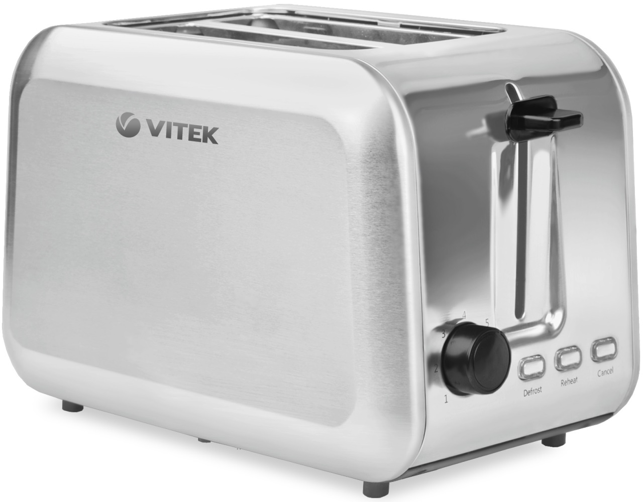 Тостер VITEK VT-1588 на 2 тоста мощность 750 Вт механическое управление функция размораживания металлический прочный корпус поддон для крошек