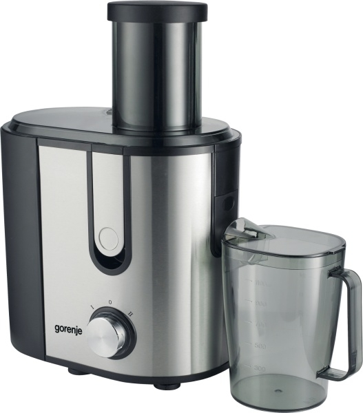 Соковыжималка Gorenje JC900E центробежная соковыжималка мощность 900 Вт стакан для сока в комплекте подача сока сразу в стакан автоматический выброс мякоти корпус из нержавеющей стали возможность загрузки целых плодов