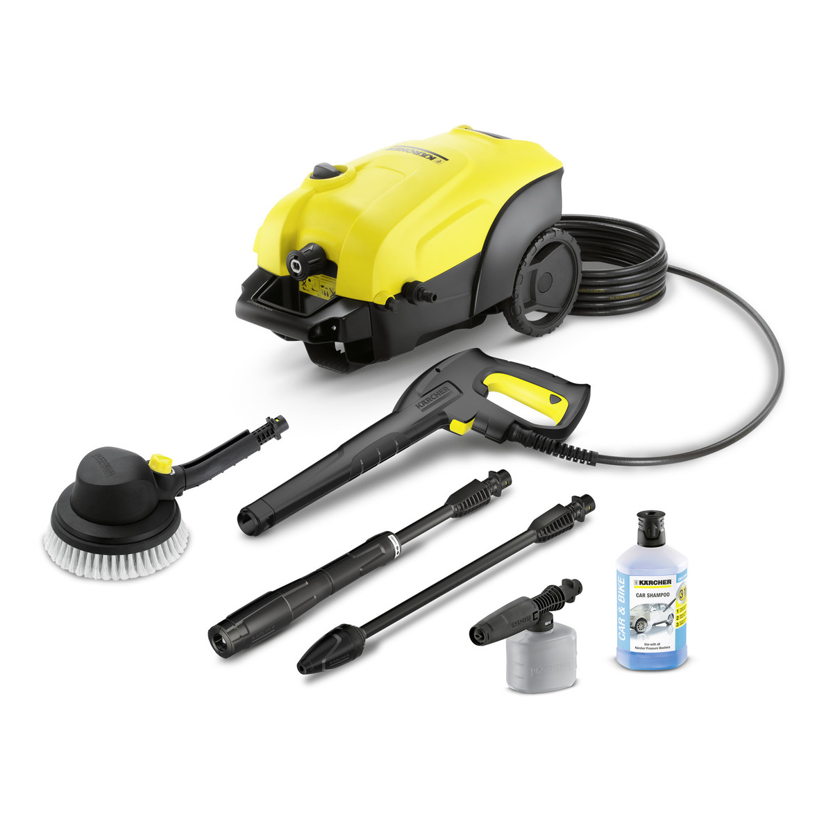 Мини-мойка Karcher K 4 Compact Car Удобная для транспортировки и хранения мини-мойка K 4 Compact Car с водяным охлаждением двигателя идеально подходит для периодической очистки умеренной грязи. Этот аппарат идеально подходит для очистки заборов, велосипедов и небольших автомобилей. Это компактная и мощная модель. Практичная телескопическая ручка позволяет легко транспортировать мини-мойку. Модель оснащена пистолетом с системой Quick Connect, 6 м шланга высокого давления, струйной трубкой Vario Power с возможностью регулировки давления, грязевой фрезой для удаления стойких загрязнений и надежным фильтром предворительной очистки воды для защиты помпы. Благодаря пенной насадке, вращающейся щетке и авто-шампуню 3в1 мойка автомобиля теперь проходит легко и быстро! Давление (бар/MPa) 20 - up to 130 / 2 - up to 13 Производительность (л/ч) макс. 420 Макс. температура на входе (°C) макс. 40 Потребляемая мощность (кВ) 1,8 Производительность по площади (м?/ч) 30 Вес без аксессуаров (кг) 10,7 Габариты (длина х ширина х высота) (мм) 516 x 295 x 282