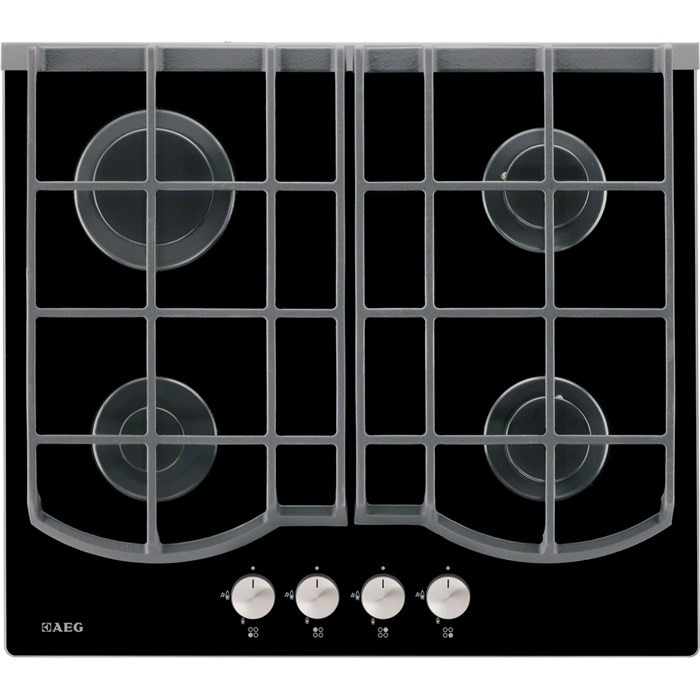 Варочная панель AEG HG694340NB газовая варочная панель поверхность из закаленного стекла 4 газовые конфорки переключатели поворотные электроподжиг независимая установка габариты (ШхГ) 59x52 см