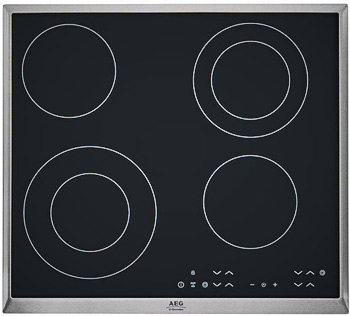 Варочная панель AEG HK634021XB электрическая варочная панель стеклокерамическая поверхность керамические конфорки двухконтурная конфорка переключатели сенсорные кнопочное защита от детей индикатор остаточного тепла независимая установка габариты (ШхГ) 57.6x51.6 см