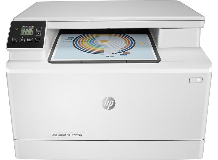 HP Color LaserJet Pro MFP M180n МФУ (принтер, сканер, копир) для небольшого офиса 4-цветная лазерная печать макс. формат печати A4 (210 ? 297 мм) макс. размер отпечатка: 216 ? 356 мм ЖК-панель EthernetHP Color LaserJet Pro MFP M180n