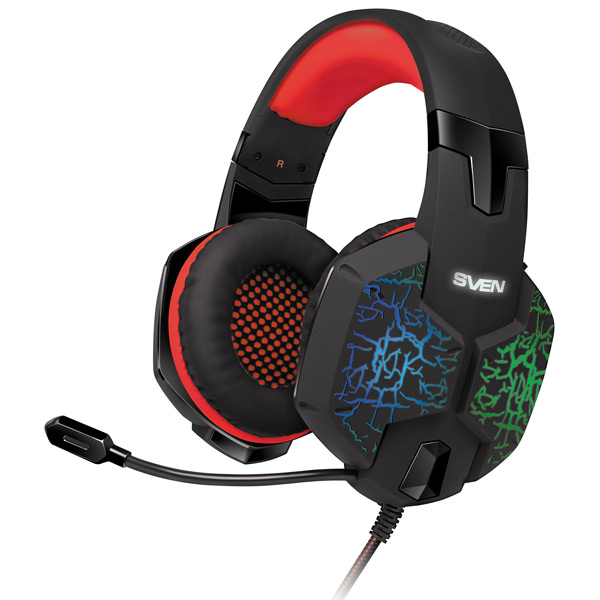 Наушники SVEN AP-U988MV, Gaming Headphones with microphone, sound 7.1, 7 colors dynamic backlight, Non-tangling cable with fabric braid, Cable length: 2.2m, USB, Black/Red Геймерские наушники с микрофоном Sven AP-U988MV, предназначенные для профессиональных геймеров, своим ярким, наполненным энергией дизайном с подсветкой сразу привлекают внимание. Они обеспечивают объемный и реалистичный звук 7.1, имеют пассивную систему шумоподавления и великолепное качество звукопередачи, что позволяют полностью погрузиться в игровую реальность. Кабель наушников имеет специальную тканевую оплетку, придающую дополнительную износостойкость и препятствующую запутыванию. Особенности: Объёмное звучание: Surround sound 7.1 Оптимизированные для профессионального гейминга Наушники с пассивной системой шумоподавления Высочайшее качество звучания Тканевая оплетка кабеля, препятствующая спутыванию ПО в комплекте Комфортная посадка Комплектация: Наушники, Диск с ПО Тип наушников Закрытые Тип подключения Проводное Интерфейс проводного подключения 1 x USB Цвет Black-Red Наличие активного шумоподавления Нет Форма штекера Прямой Кабель Односторонний Диапазон частот наушников 20 – 20000 Гц Сопротивление наушников 32 Ом Чувствительность наушников 108 ± 3 дБ