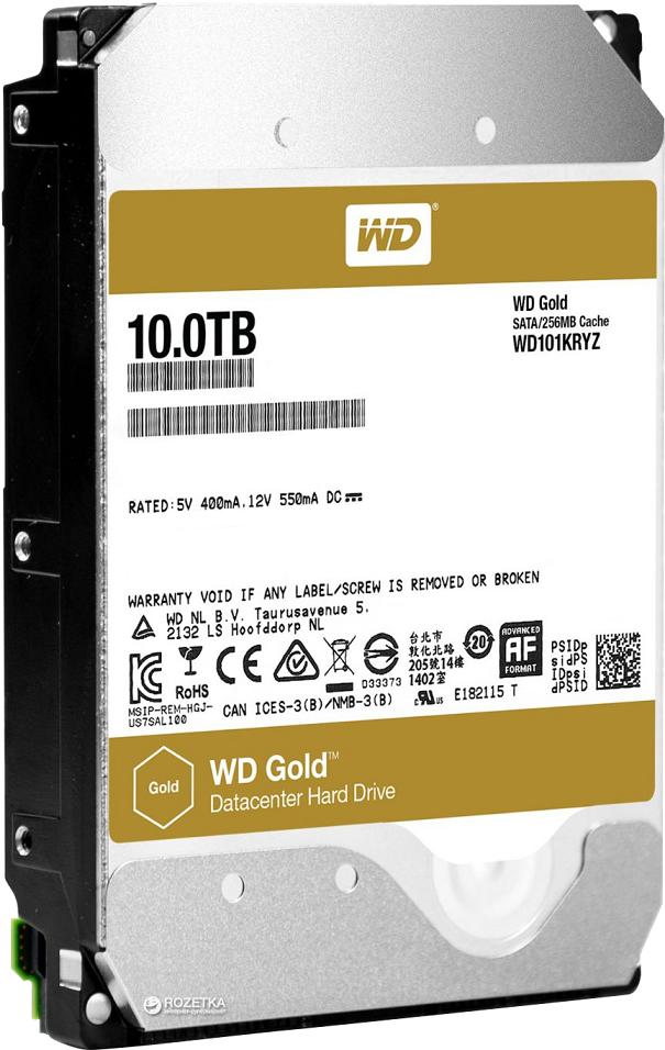 3.5" HDD 10.0TB Western Digital Gold, 7200rpm, 128MB, NCQ-technology SATAIII (server) WD101KRYZ жесткий диск для сервера объем 10000 ГБ форм-фактор 3.5" интерфейс SATA 6Gb/s