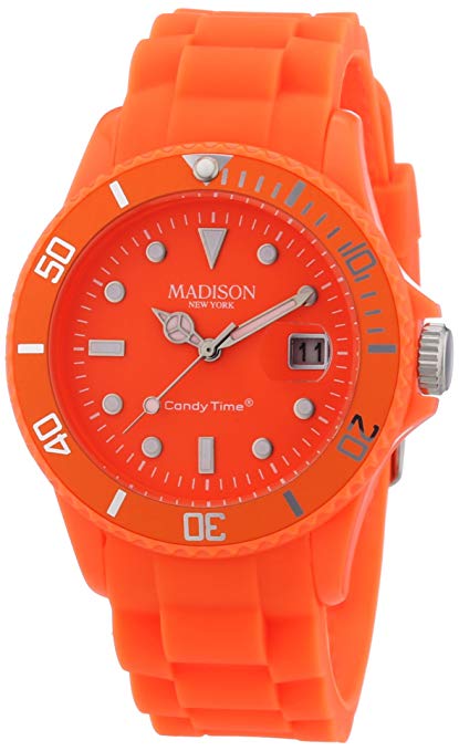 Ceas de mina Medison New York Candy Time Neon Analog Quarz Silikon U4503-51 Наручные часы Madison New York Candy Time станут отличным дополнением образа. Данная модель обладает стильным ярким дизайном, приятным на ощупь силиконовым ремешком, кварцевым механизмом, гарантирующим долговечность, надежность и качественную работу. Помимо времени, эти часы отображают дату, что очень комфортно и удобно. Модель: Candy Time Neon U4503-51 Orange Производитель: Madison New York Назначение: унисекс Тип механизма: кварцевые Форма: круг Материал браслета/ремешка: силикон Материал корпуса: нерж. сталь/пластик Формат времени: 12 часов Цифры: отсутствуют Секундная стрелка: центральная Отображение даты: число Способ отображения времени: аналоговый (стрелки) Тип стекла: минеральное Источник энергии: батарейки Цвет: оранжевый Ширина ремешка(мм): 20 Водонепроницаемые: да Класс водонепроницаемости: 50м Диаметр корпуса: 40