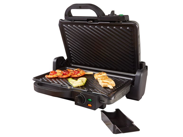Электрогриль SilverCrest SKG 1700 B3 Уникальный и мощный гриль SilverCrest SKG 1700 B3 совмещает в себе три режима готовки, которые увеличивают кулинарные возможности. При режиме обычного гриля можно готовить любые гриль-блюда, от мяса и рыбы до овощей и грибов. Режим контактного гриля позволяет быстро жарить стейки, готовить горячие бутерброды и шаурму, а при режиме гриль-печи можно подрумянить верх и низ любого блюда и добиться золотистой корочки. Модель: SKG 1700 B3 (Black) Производитель: SilverCrest Тип: барбекю Мощность (Вт): 1700 Тип управления: механическое Количество режимов: 3 Особенности: нескользящие ножки, поддон для сбора жира, регулировка температуры Антипригарное покрытие: есть Контактный гриль: есть Цвет: черный Высота (мм): 118 Глубина (мм): 391 Ширина (мм): 325