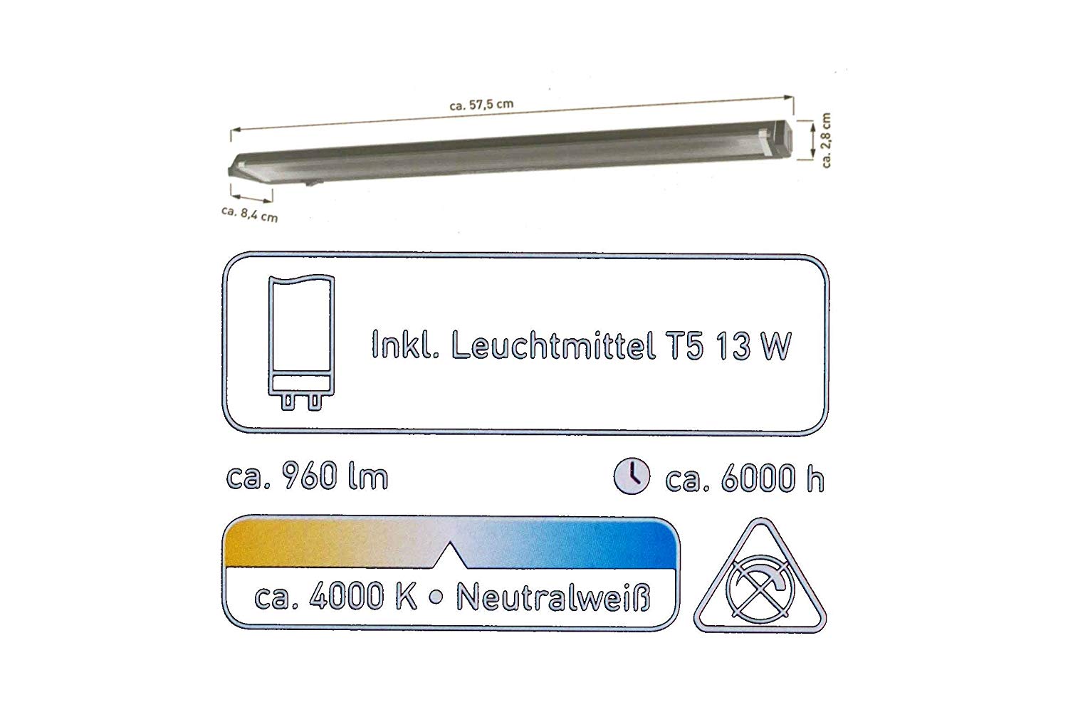 Lampa LED LivarnoLux 14102104L(Titan) Livarno® Lux - энергосберегающий светильник. Индивидуально расширяемый включая соединительный кабель около 2 метров питающей линии и монтажного материала. С поворотным передним фронтом Включение / выключение на корпусе. Идеально подходит для подконструкции и настенного монтажа Цвет корпуса: титан, размеры: приблизительно B 57,5 ??x H 2,8 x D 8,4 см Люминесцентная лампа T5: около 13 Вт. Класс энергопотребления: A