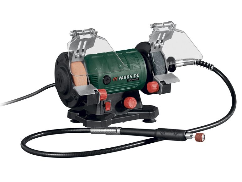 Точильный станок Parkside PDFW120A1 Точильный станок Parkside PDFW120A1 применяется как в быту, так и в небольших мастерских для затачивания режущих частей металлических инструментов. Благодаря наличию гибкого вала, машина может применяться также для шлифовки и полировки. Инструмент оборудован регулятором скорости вращения, что позволяет с высокой эффективностью выполнять поставленную задачу. Мощность: 120 Вт Диаметр диска: 75 мм Рабочая скорость: 40 м/с Частота холостого хода: 9900 об/мин Длина кабеля: 2 м